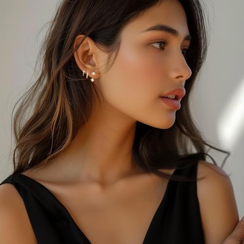 • 3 pairs star earrings set: Our box contains 3 pairs of earrings, 1 pair of gold polestar earrings, 1 pair of cz hoop earrings, 1 pair of star stud earrings. They are a convenient size, small and dainty but enough to be noticed