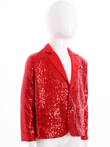 Kids Girls Sequin Blazer Jacket Sparkly Long Sleeve Button Down Lapel Suit Coat with Pockets 6