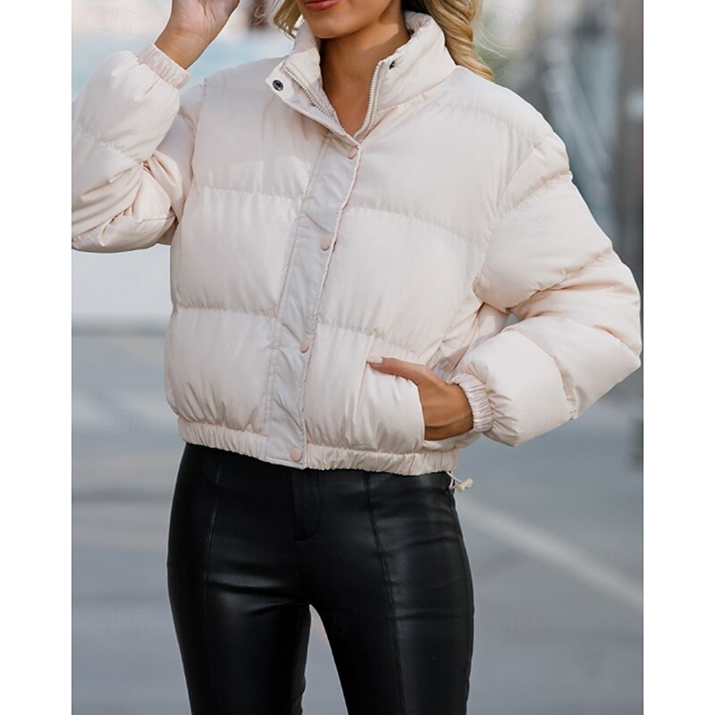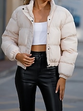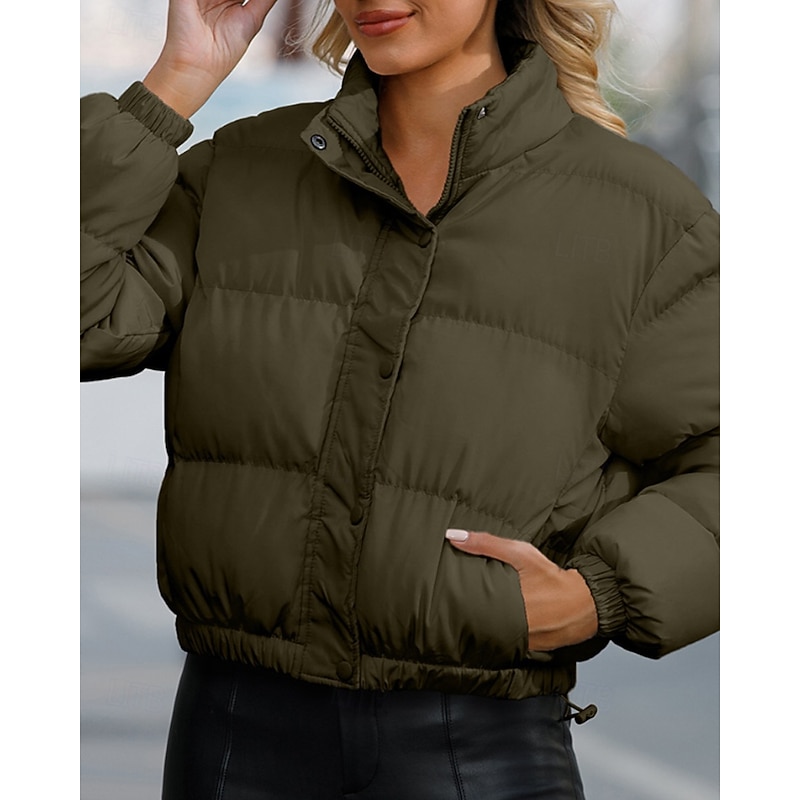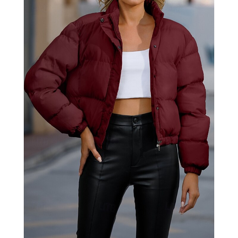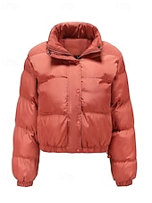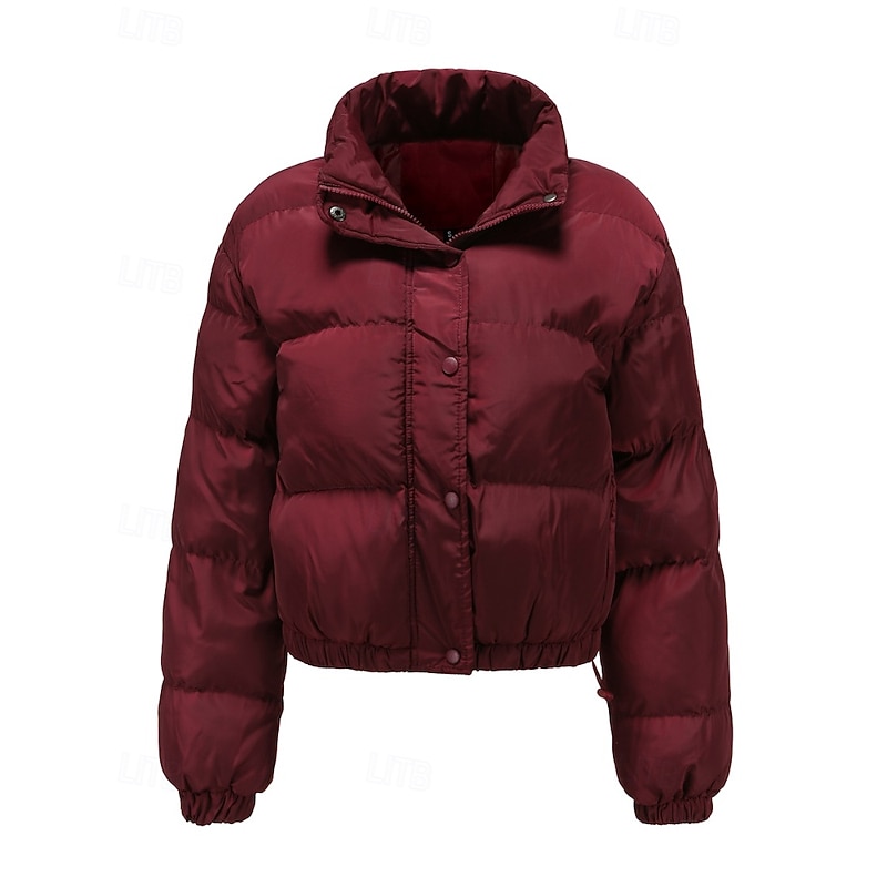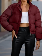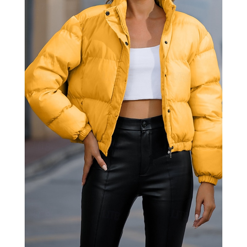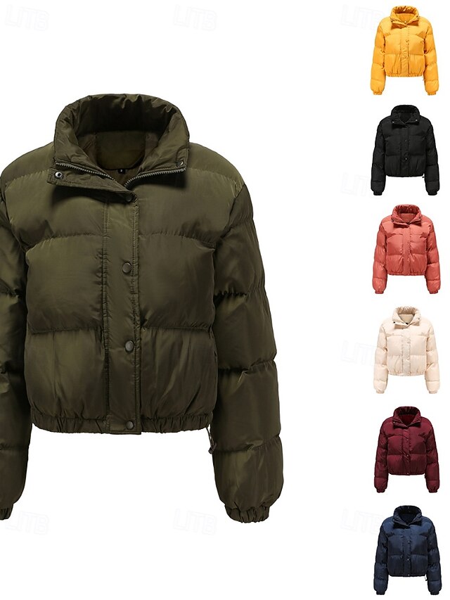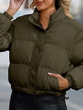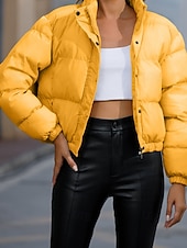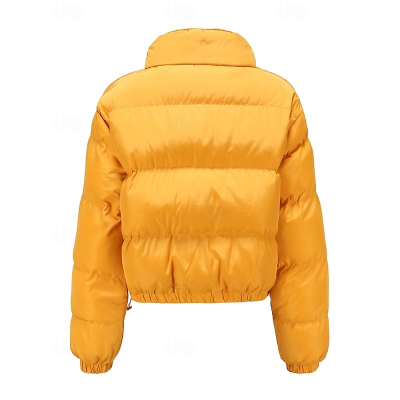 More information about Women's Winter Coat Quilted Jacket Warm Comfortable Zipper Pocket Casual Plain Vacation Daily Wear Going out Weekend Short Stand Collar Loose Fit Long Sleeve Outerwear Black Yellow Wine Fall Winter
