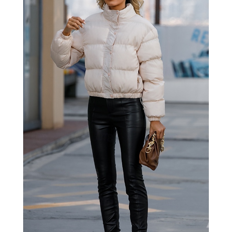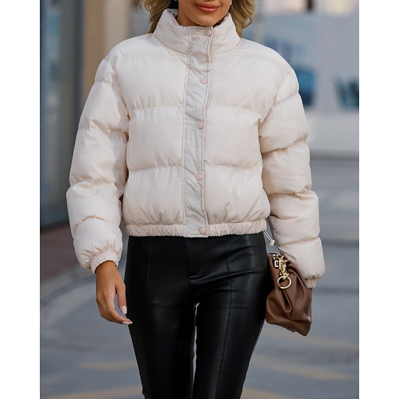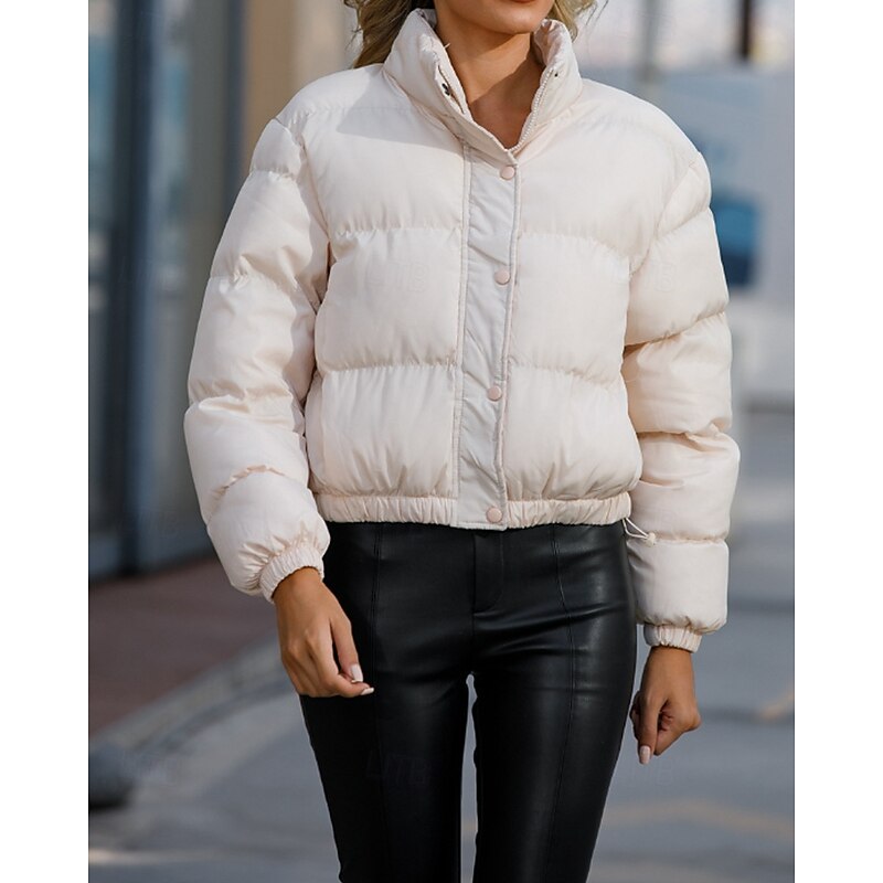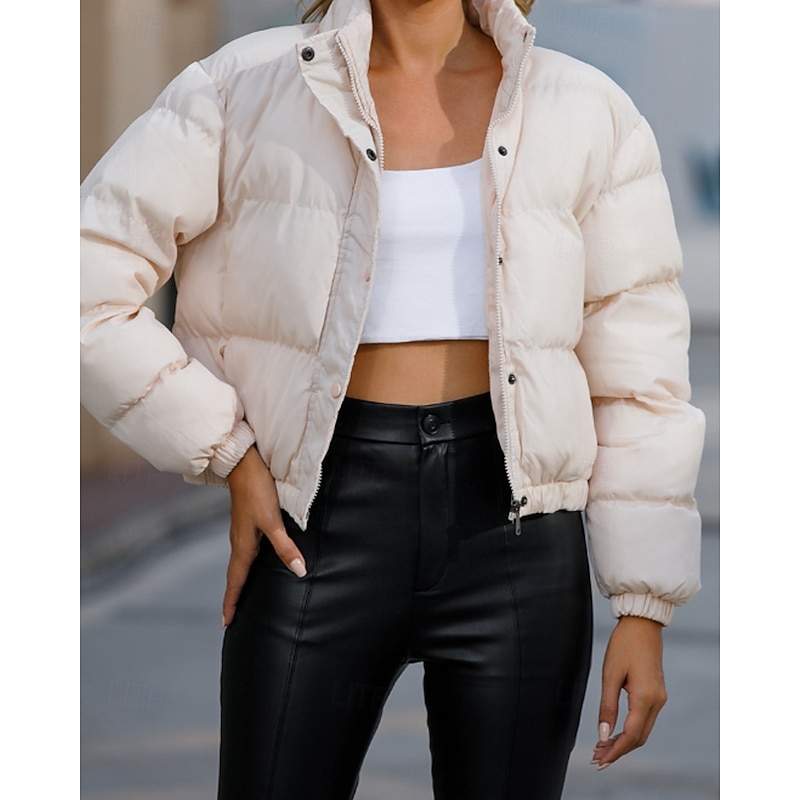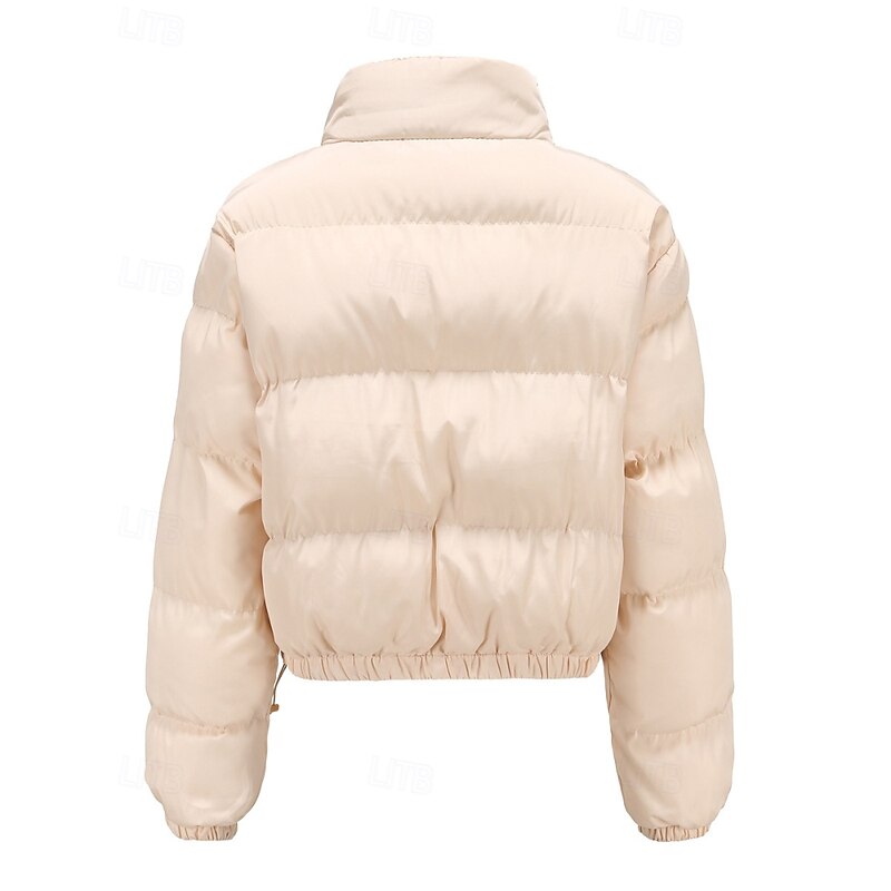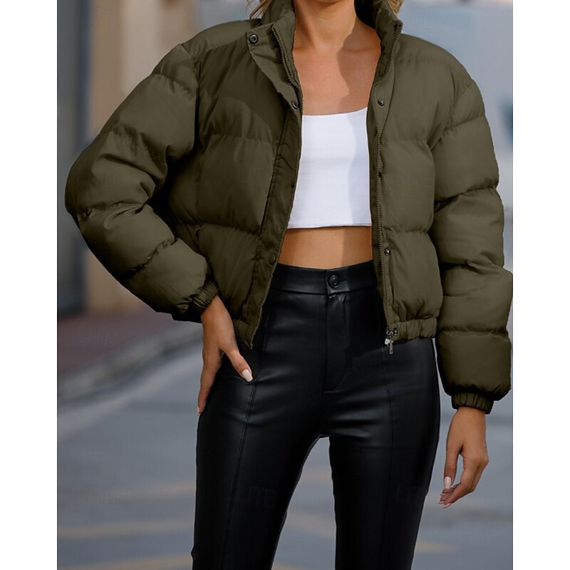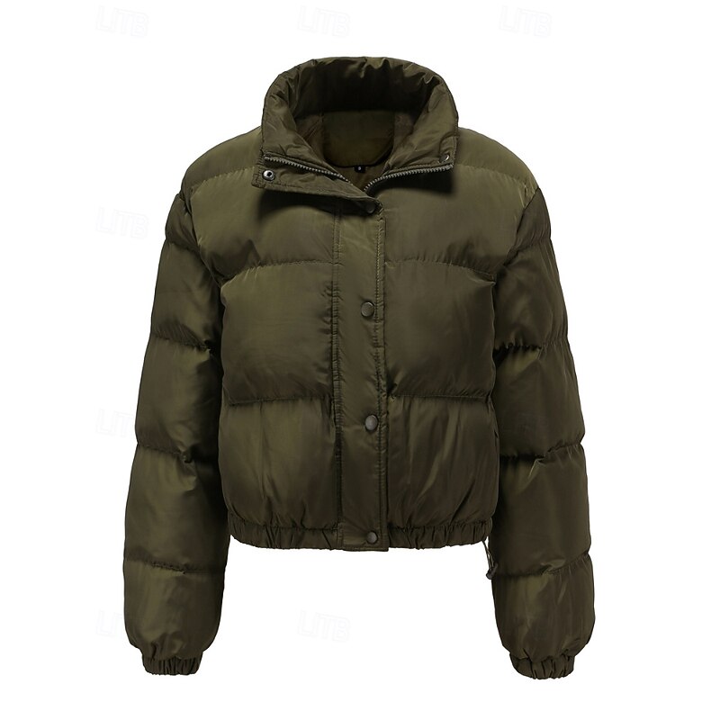 More information about Women's Winter Coat Quilted Jacket Warm Comfortable Zipper Pocket Casual Plain Vacation Daily Wear Going out Weekend Short Stand Collar Loose Fit Long Sleeve Outerwear Black Yellow Wine Fall Winter