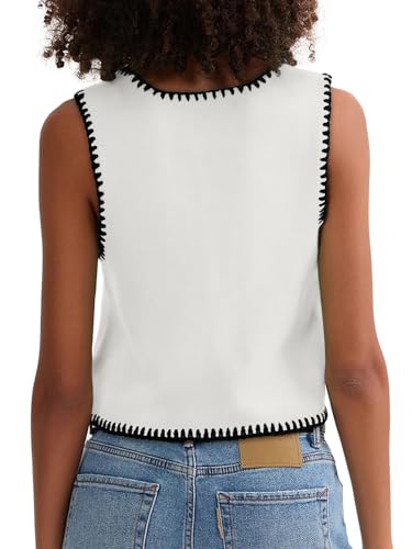 Womens Sweater Vest Top Trendy Summer Outfits 2025 Sleeveless Button Down Crop Knit Tank Tops 4