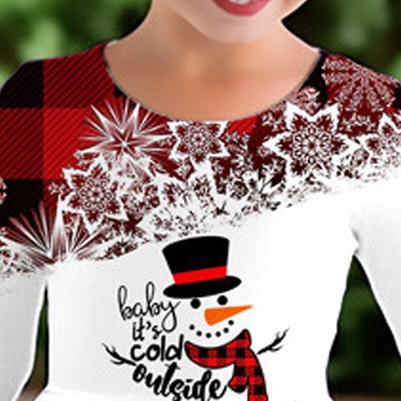 More information about Girls' 3D Plaid Snowman Snowflake Dress Snowflake Dress Long Sleeve 3D Print Fall Winter Vacation Sports & Outdoor Daily Cute Casual Beautiful Kids 3-12 Years Casual Dress A Line Dress Above Knee