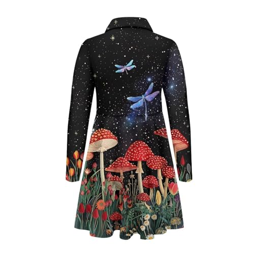 Girls' Casual Long Sleeve Polos Dress Size 2-14T Round Neck Pleated Dress for Girls Fall Daily Wear 7