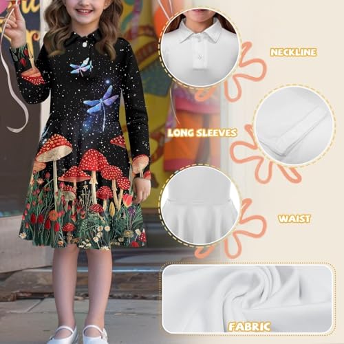 More information about Girls' Casual Long Sleeve Polos Dress Size 2-14T Round Neck Pleated Dress for Girls Fall Daily Wear