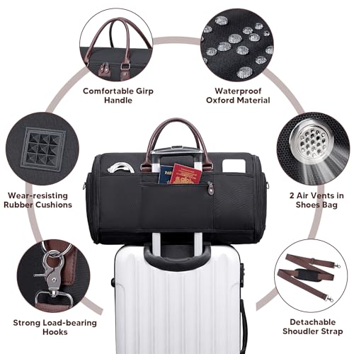 HOT ! Carry on Garment Bag for Travel, Convertible Garment Duffle Bags for Men Women - 2 in 1 Hanging Suitcase Suit Travel Bags with Shoe Compartment