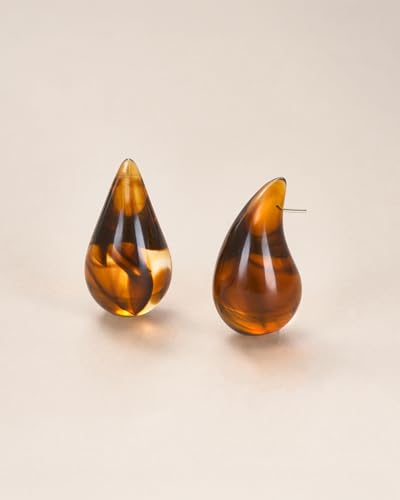 Brown Teardrop Water Drop Oval Chunky Colored Resin Tigers Eye Gemstone Statement Earrings for Women by SNGIA, Bold Drop Handmade Exaggerated Irregular Trendy Bohemian Stud Jewelry Gifts, Unique Dangling Baroque Stone Summer Beach Fashion Accessories, Round Vintage Thick Circular Nickle Free Huggies Hoop Earring. 5