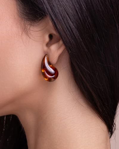 More information about Brown Teardrop Water Drop Oval Chunky Colored Resin Tigers Eye Gemstone Statement Earrings for Women by SNGIA, Bold Drop Handmade Exaggerated Irregular Trendy Bohemian Stud Jewelry Gifts, Unique Dangling Baroque Stone Summer Beach Fashion Accessories, Round Vintage Thick Circular Nickle Free Huggies Hoop Earring.
