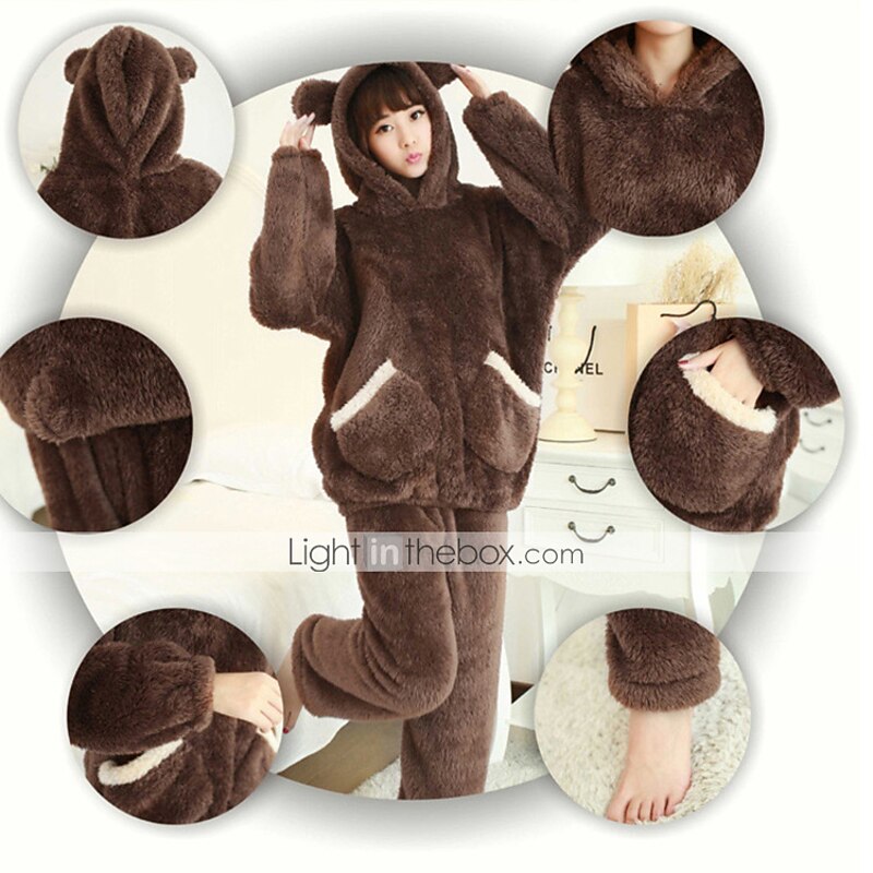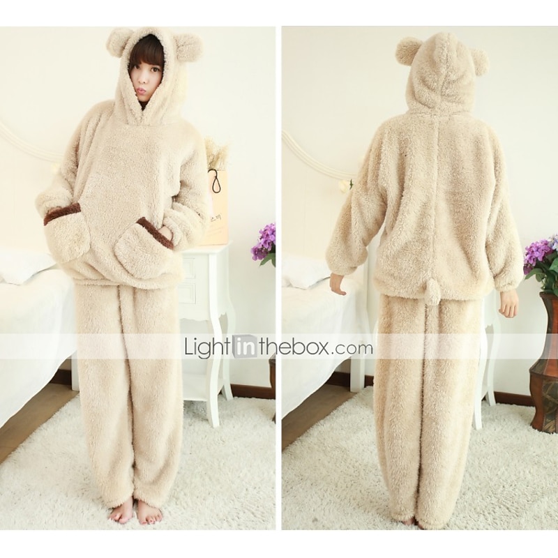 More information about Adults' Pants Hoodie Kigurumi Pajamas Bear Solid Colored Onesie Pajamas Flannel Fabric Cosplay For Men's Women's Male Animal Sleepwear Television Warmer Creative Cartoon Festival / Holiday Costumes