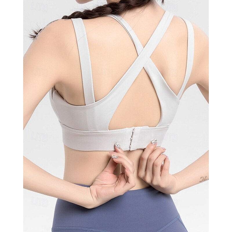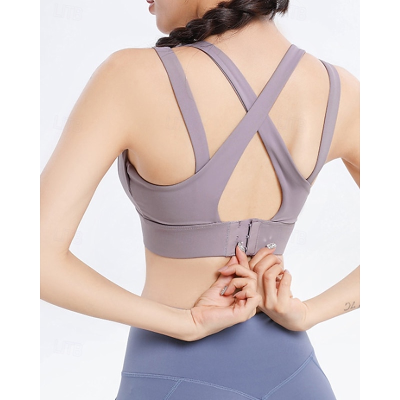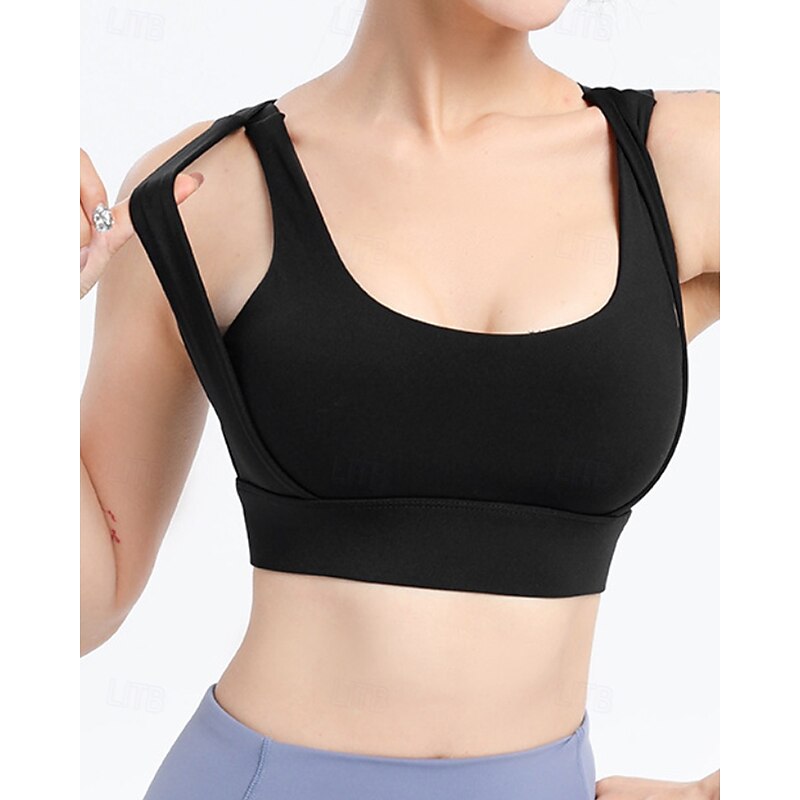 More information about Women's Solid Colored Tennis Bra Sleeveless Backless Shockproof Moisture Wicking Breathable Tennis Golf Jogging U Neck Crisscross Back Black Sky Blue Purple Tennis Clothing