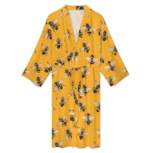 HOT ! Cute Bees Funny Men's Robe Soft Lightweight Bathrobe Long-sleeve Spa Robes