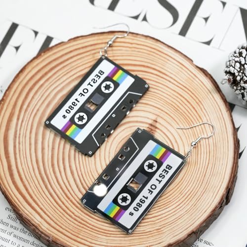 HOT ! 70s 80s 90s Earrings for Women Retro Cassette Tape Earrings Acrylic Radio Tape Drop Dangle Earring for Halloween Cosplay Glow Party Music Festival Costume Accessories