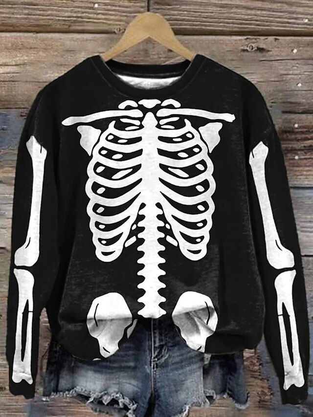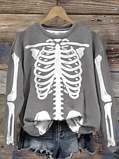 More information about Halloween Women's Sweatshirts Skulls Graphic Casual Long Sleeve Crew Neck Regular Tops Street Dailywear Casual Print Black White Gray Fall Winter