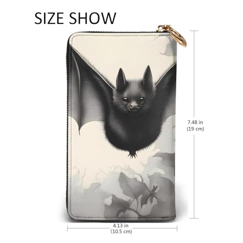 HOT ! Bat Print Picture Leather Long Clutch Wallet for Fashionable Girls and Women - Durable, Stylish, and Functional, Black, One Size