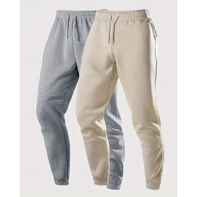 Multi Packs 2pcs Men's Gray+Khaki Sweatpants Trousers Drawstring Elastic Waist Plain Vacation Daily Wear Polyester Spring 2