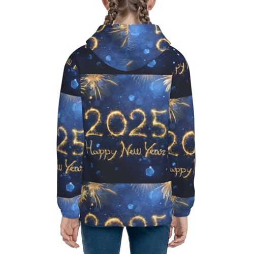 Happy New Year 2025 Kids Pullover Hoodies Boys Zip Up Sweatshirts Girls Athletic Clothes with Pocket 4