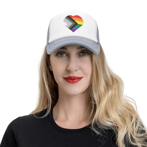 LGBT Rainbow and Transgender Pride Flag Heart Trucker Hat Snapback Mesh Baseball Cap Unisex 5