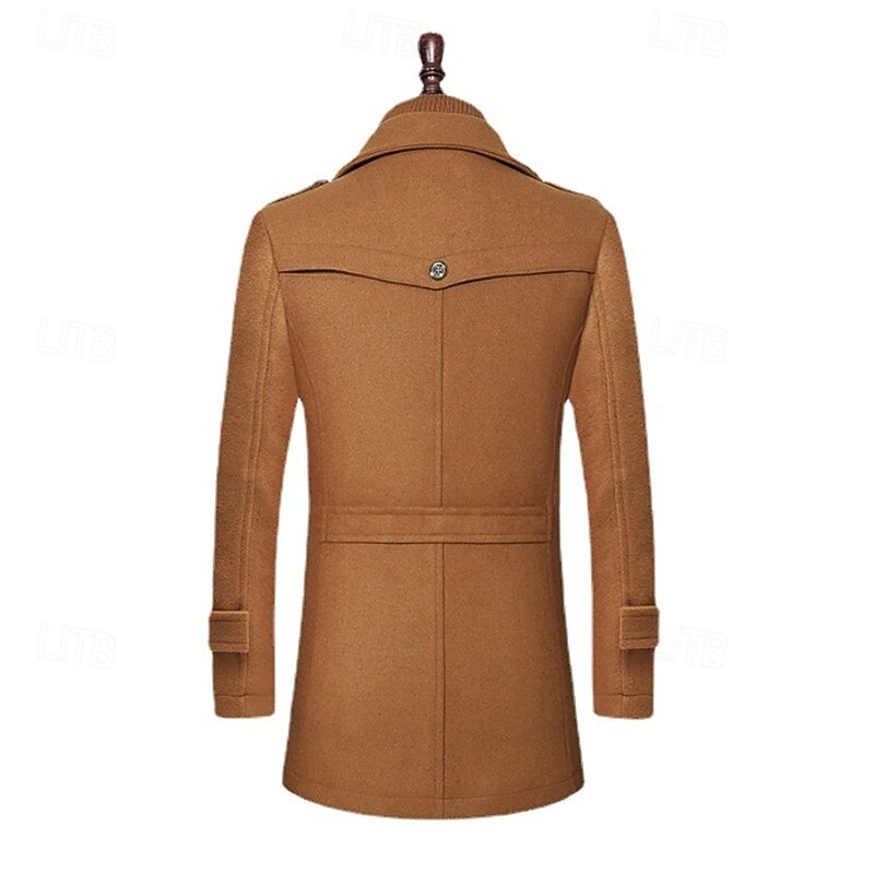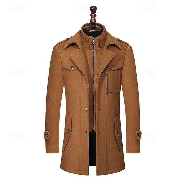 Highlights [Fabric] : Crafted from a blend of wool, polyester, and acrylic, this men's trench coat offers a balance of warmth and durability, ensuring comfort in the colder months. The high-quality materials give it a soft, luxurious feel while providing excellent thermal insulation. [Fit] : This coat features a tailored design that enhances the silhouette, highlighting the shoulders and chest for a strong, masculine look. The regular outerwear length makes it a versatile choice for various occasions. [Design Highlights] : Showcasing a classic lapel neckline and a single-breasted placket, this coat includes both flap and zip pockets for added utility and style. The shoulder epaulets bring a subtle military-inspired touch, while the ribbed inner layer at the high-neck offers additional warmth and a modern flair. The cuffs with adjustable button straps also provide a customized fit. [Occasions] : Ideal for fall and winter, this versatile coat suits a range of settings from daily wear to vacations and outings. Its windproof and thermal warm features make it a practical choice for outdoor activities during the cooler seasons. [Size Range] : Available in a wide range of sizes from XS to XXL, this coat is designed to accommodate different body types, ensuring the perfect fit for everyone.