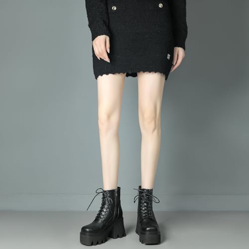 Shinelly Women's Platform Combat Boots Round Toe Lace Up Chunky Heel Ankle Boots 6