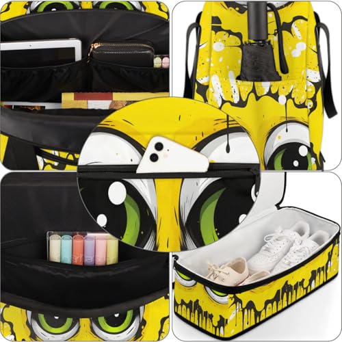 Large Weekender Overnight Bags Yellow Strange Eyes Travel Duffel Bag for Women Men Gym Bag With Shoe Compartment Foldie Travel Tote Bag Carry On Personal Item Bag for Travel Gym Sports 5