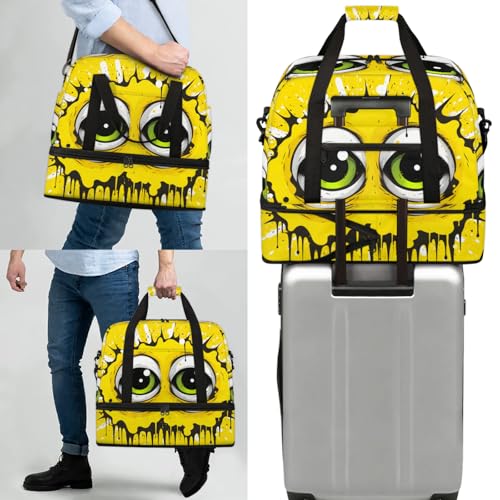 Large Weekender Overnight Bags Yellow Strange Eyes Travel Duffel Bag for Women Men Gym Bag With Shoe Compartment Foldie Travel Tote Bag Carry On Personal Item Bag for Travel Gym Sports 1