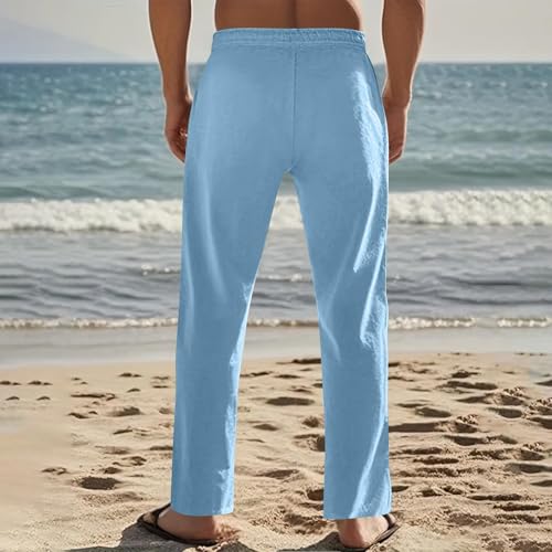HOT ! Linen Pants Men Casual Drawstring Loose Fit Beach Summer Pants with Pockets Lightweight Comfy Yoga Trousers