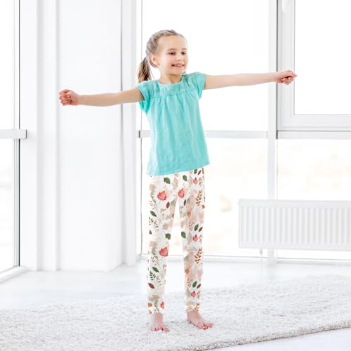 senya Girls Printed Leggings Yoga Pants Watercolor Maple Leaf Pattern for Kids in 4t to 10 Years, 4T 7