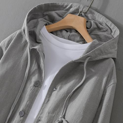 Men's Ramie Cotton Jacket Hooded Coat Casual Breathable Spring Autumn Hoodie Jackets For Men 5