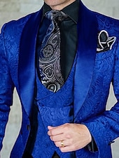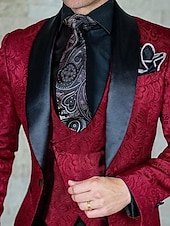 More information about Men's Wedding Prom Suits Shawl Collar Black Burgundy Jacquard Floral Tailored Fit 3 Piece Single Breasted One-button