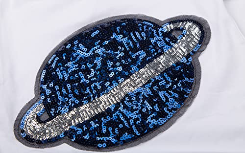 Mud Kingdom Little Girls Summer T-Shirt White Cute Sequins Planet Size 5 4