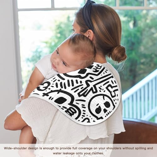 4 Pack Baby Burp Cloths, Soft Absorbent Burping Cloths for Babies, Cotton Milk Spit Up Rags, Large Size for Newborns, Baby Boys and Girls (Cute Skull) 5