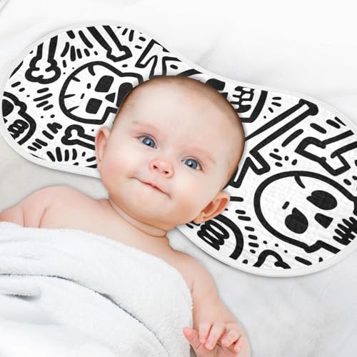 4 Pack Baby Burp Cloths, Soft Absorbent Burping Cloths for Babies, Cotton Milk Spit Up Rags, Large Size for Newborns, Baby Boys and Girls (Cute Skull) 4
