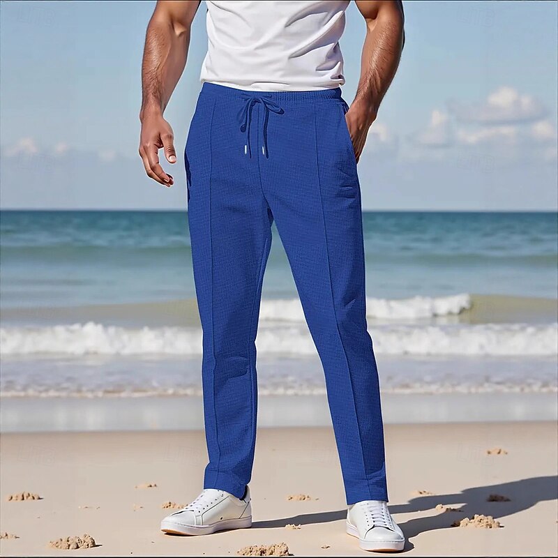 HOT ! Men's Sweatpants Joggers Trousers Casual Pants Waffle Pants Elastic Waist Drawstring Plain Comfort Full Length Outdoor Casual Daily Vacation Fashion Black White Stretchy