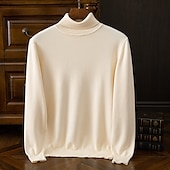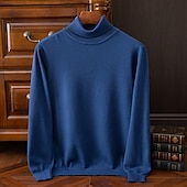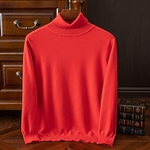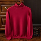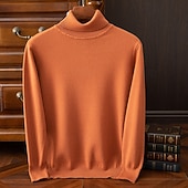 More information about Men's Pullover Sweater Jumper Knit Sweater Ribbed Knit Regular Tops Knitted Plain Turtleneck Fashion Basic Vacation Daily Wear Clothing Apparel Fall Winter Wine caramel S M L