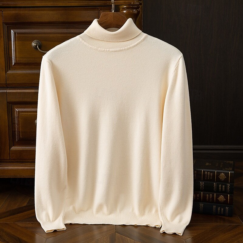 HOT ! Men's Pullover Sweater Jumper Knit Sweater Ribbed Knit Regular Tops Knitted Plain Turtleneck Fashion Basic Vacation Daily Wear Clothing Apparel Fall Winter Wine caramel S M L