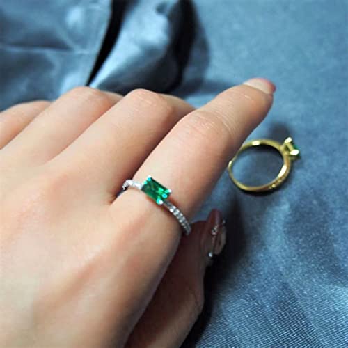 Emerald Cut Gold Plated 925 Sterling Silver Rings for Women, Genuine May Birthstone Gift, Wedding Jewelry Rings for Women 6