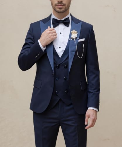 3 Piece Formal Suit for Men Slim Fit Dressy Business Blazer Mens Wedding Prom Suit Jacket Pants Vest Set 3
