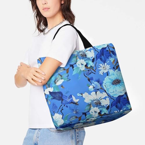 Blue Floral Large Grocery Tote Bag Women Fashion Handbag Duty Reusable Shoulder Bag for Travel Vacation Shopping Beach Bags 6
