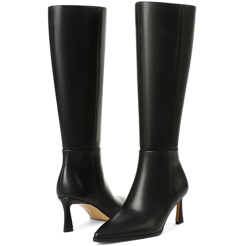 • Fashion-Forward Design: Elevate your style with these black boots, crafted from premium leather with a sleek pointed toe and elegant kitten heel. Perfect for date nights, parties, or travel, these knee high boots women blend sophistication with modern edge.