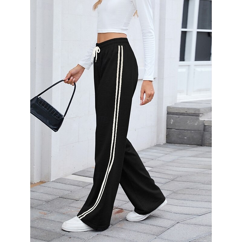 More information about Women's Sweatpants Wide Leg Chinos Fashion Streetwear Casual Full Length High Waist Plain Elastic Waistband Comfy Soft Comfortable Micro-elastic Outdoor Street Athleisure Navy-blue Black White Gray