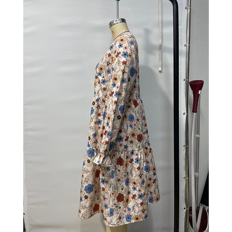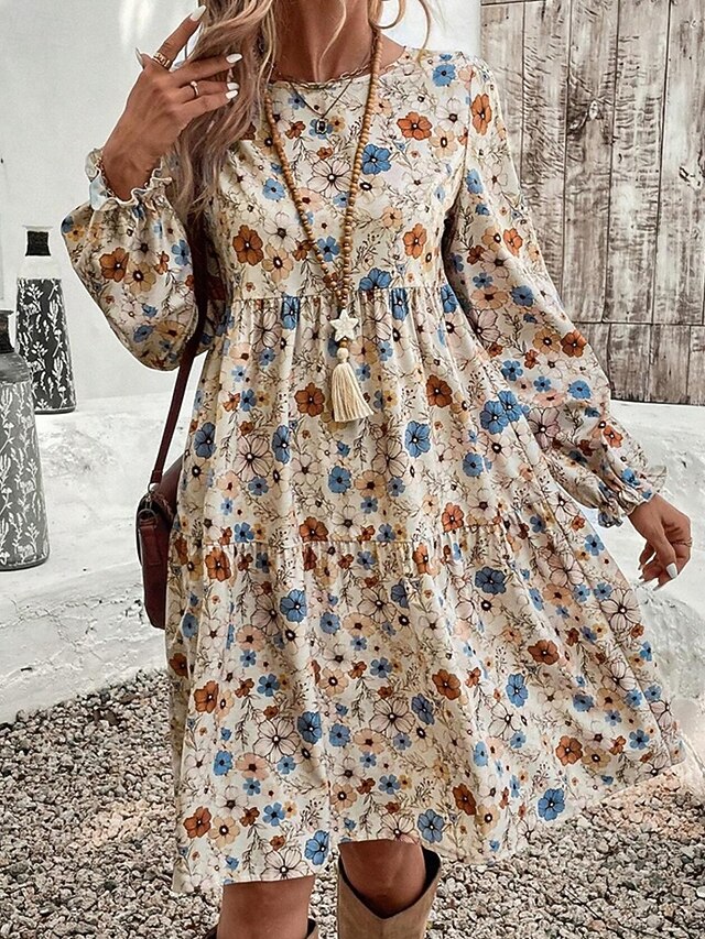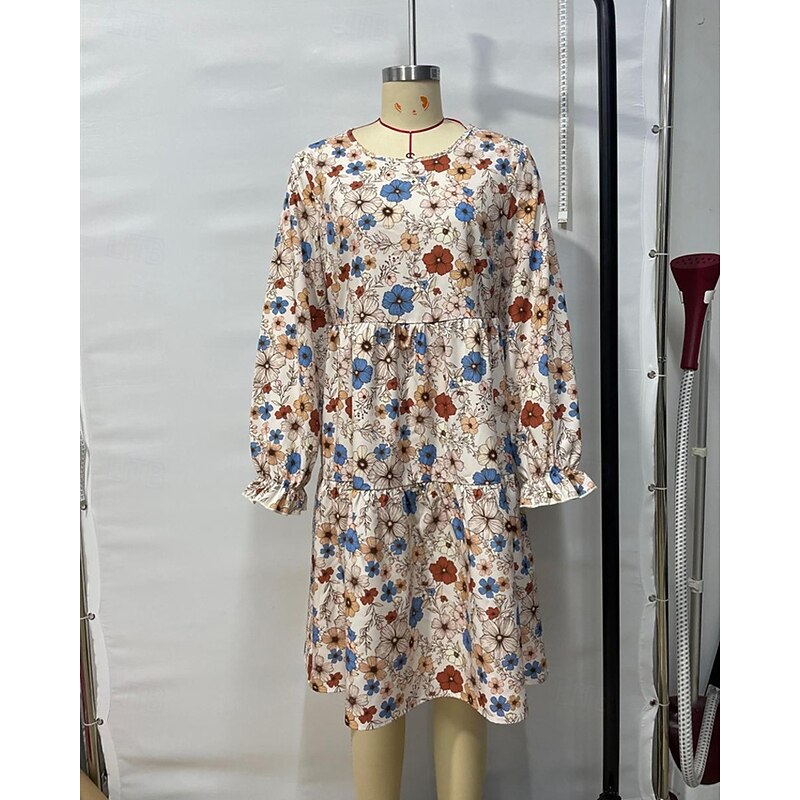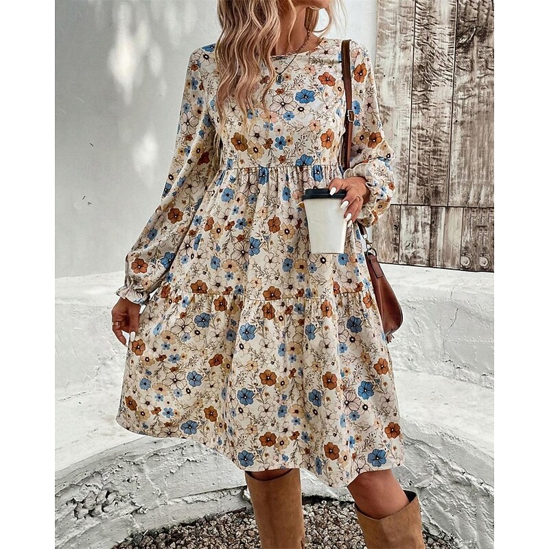 More information about Women's Mini Dress Casual Dress Floral Dress Summer Dress Elegant Fashion Lantern Sleeve Outdoor Holiday Date Regular Fit Flower Sleeveless Crew Neck Apricot Summer Spring