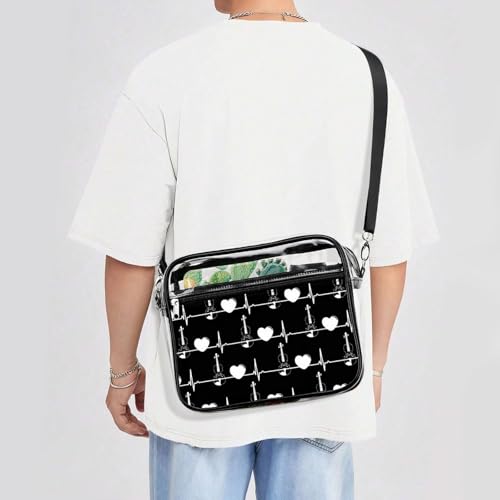 Heart Large Crossbody Bag Clear Stadium Bag Anti-Theft Side Shoulder Bags Messenger Bag with 2 Compartments 6