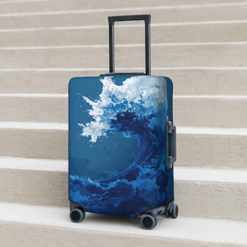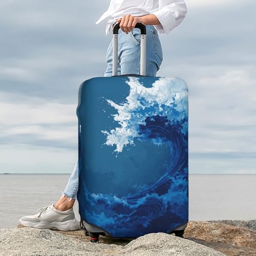 HOT ! Wave Crashing Minimalist Blue Gradients Elastic Travel Luggage Covers Dustproof Scratch-Resistant Suitcase Protector Fit 22-24 Inch
