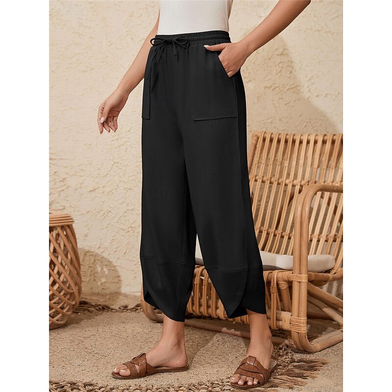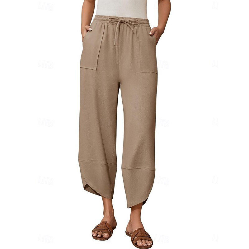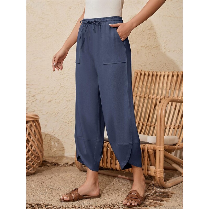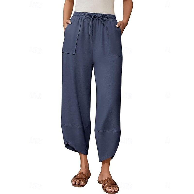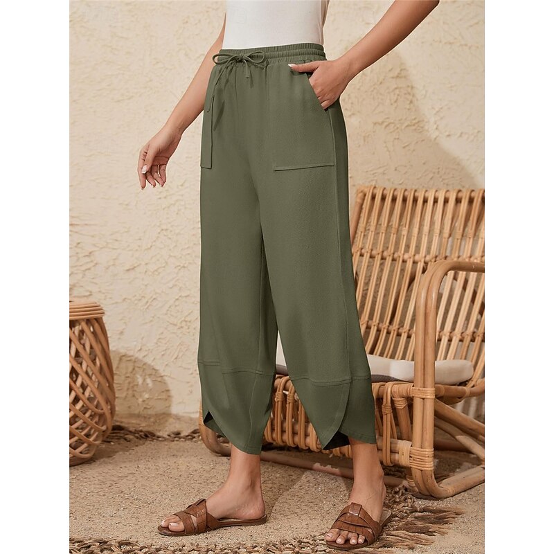 HOT ! Women's Cotton Linen Pants Chinos Fashion Basic Full Length High Waist Plain Pocket Drawstring Comfort Outdoor Micro-elastic Vacation Street Daily Army Green Black Blue Khaki Summer Spring Fall Loose