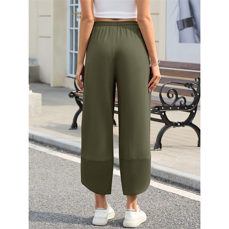 More information about Women's Cotton Linen Pants Chinos Fashion Basic Full Length High Waist Plain Pocket Drawstring Comfort Outdoor Micro-elastic Vacation Street Daily Army Green Black Blue Khaki Summer Spring Fall Loose