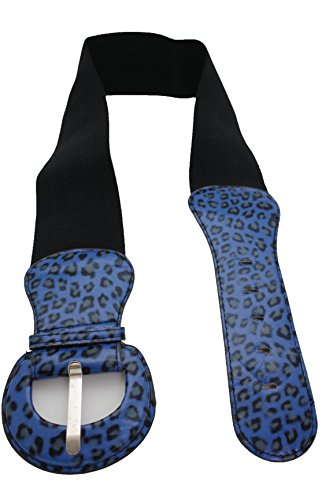 Women Elastic Fashion Wide Belt Hip Waist Blue Leopard Cheetah Animal Print Size XS S M 1