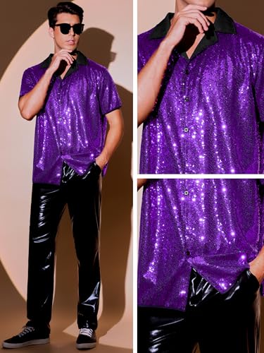 • 【UNIQUE DESIGN】Whether you're looking to make a bold statement at a themed party or add some sparkle to your everyday style, this sequin shirt is the great choice.