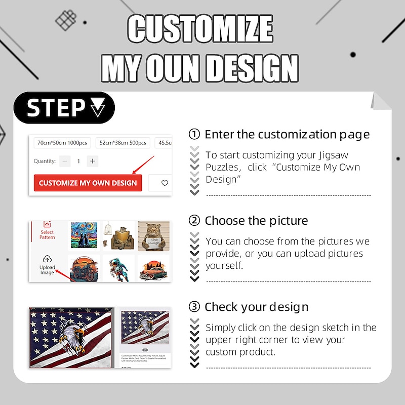 Highlights - Customizable: Create a unique photo puzzle ranging from 100pcs to 500pcs that is suitable for both kids and adults. - Personalized Gift: Surprise your loved ones with a personalized photo puzzle, a thoughtful and sentimental present. - Cherish Memories: Relive special moments with your family and pet by assembling the puzzle. - Complimentary Gift Box: Receive a FREE gift box featuring your chosen photo on the top, adding an extra touch of customization and style.