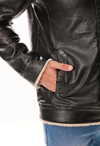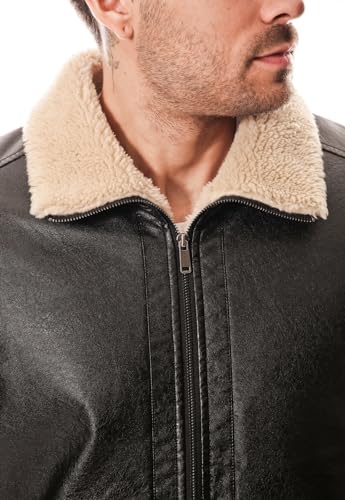 CRK Men's PU Faux Leather Winter Jacket – Fleece Lined, Zipper Down, Warm, Stylish, Water-Resistant, Comfortable & Durable 6