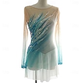 More information about Figure Skating Dress Women's Girls' Ice Skating Dress Green Patchwork Asymmetric Hem Mesh Spandex Stretchy Training Practice Professional Skating Wear Crystal / Rhinestone Long Sleeve Figure Skating