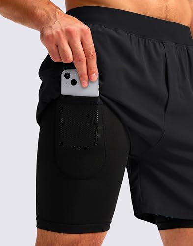 • 2 in 1 Shorts: Men's athletic shorts built-in mesh compression shorts with tight fit offers support thighs muscle to improve performance and provides more breathability and flexibility.